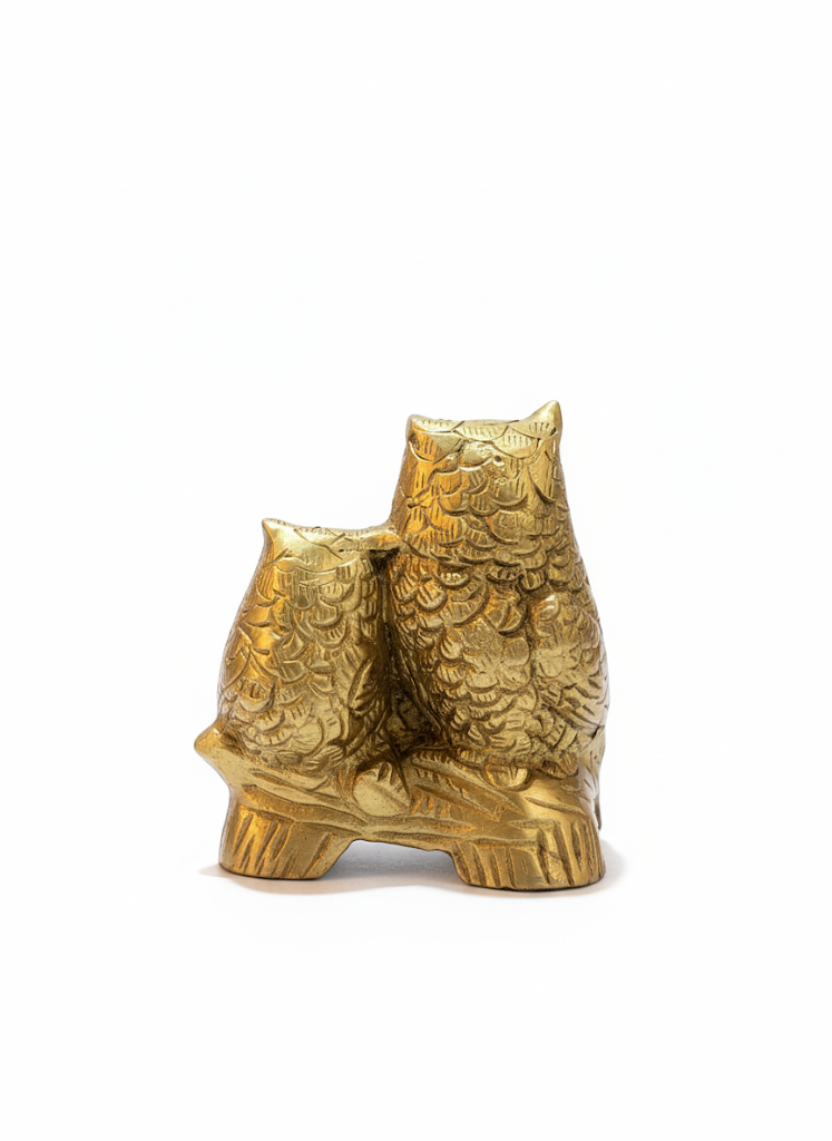 This handcrafted brass owl pair features fine detailing and a warm antique finish, symbolizing wisdom, protection, and harmony. Perfect as a home décor accent, shelf ornament, or thoughtful gift, it adds a touch of elegance and traditional charm to any space.