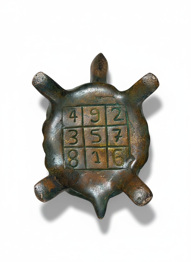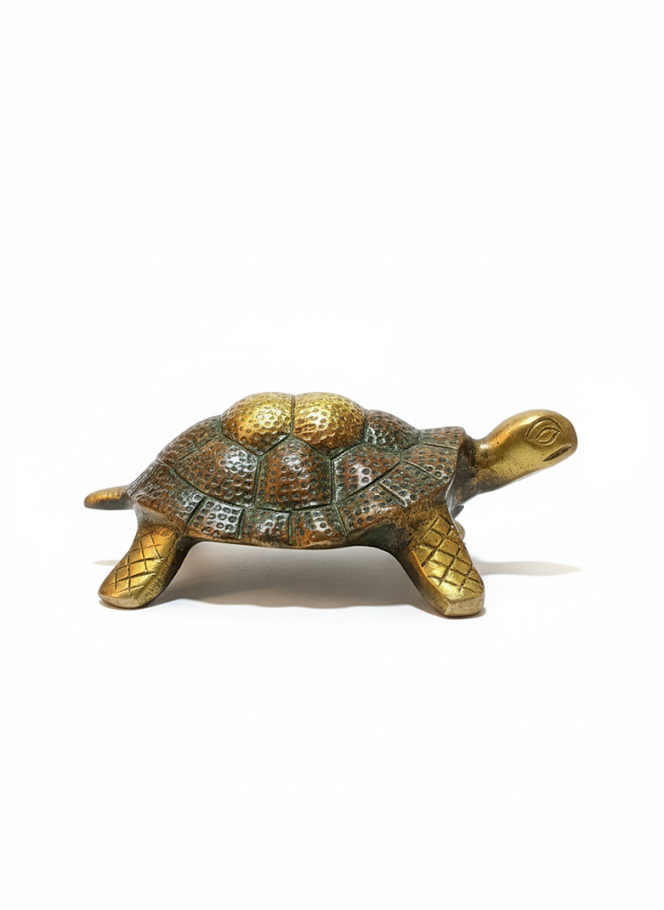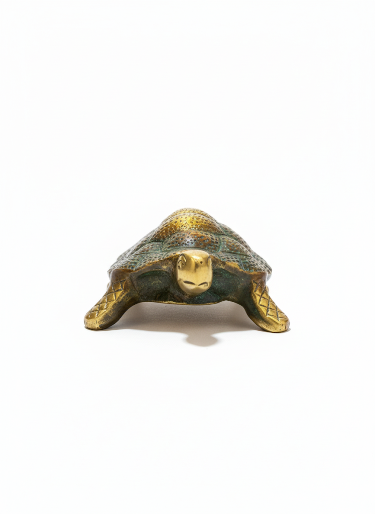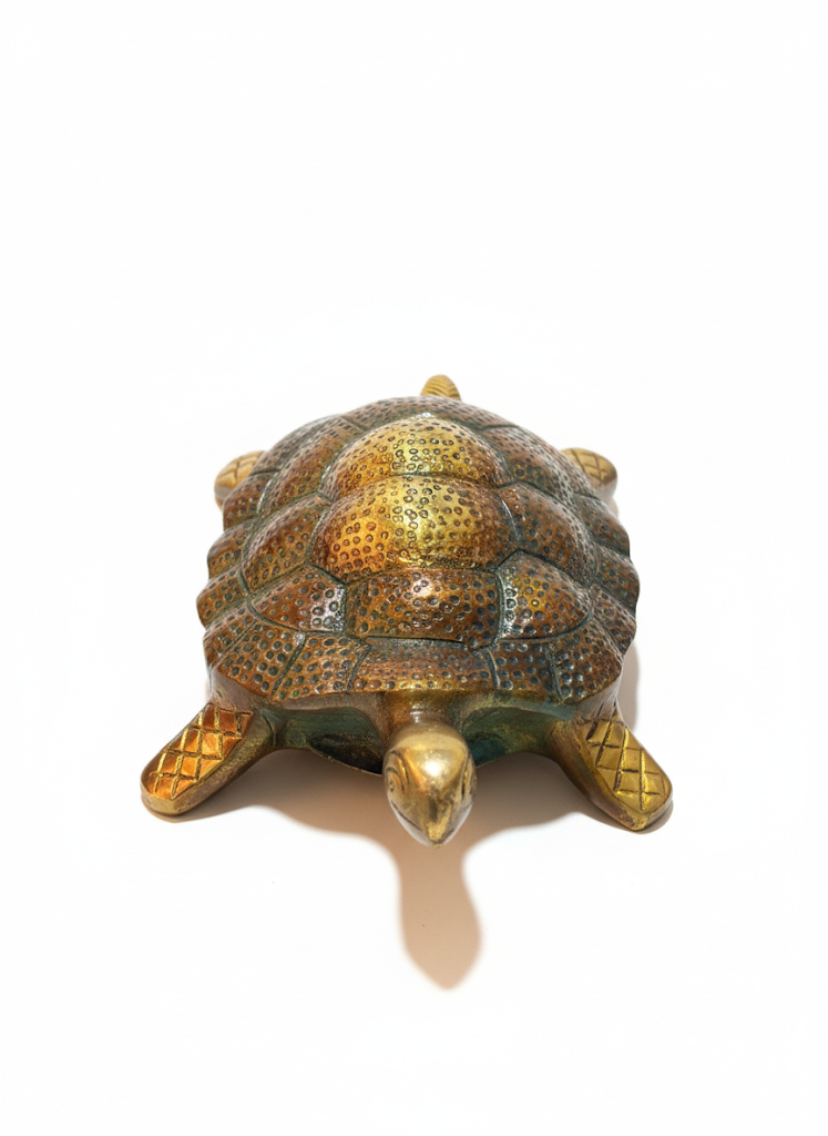 A beautifully handcrafted brass tortoise statue featuring detailed shell work and a traditional magic square motif, symbolizing stability, longevity, and prosperity. Ideal for home décor, office desks, or Vastu placement, this timeless piece adds cultural charm and positive energy to any space.