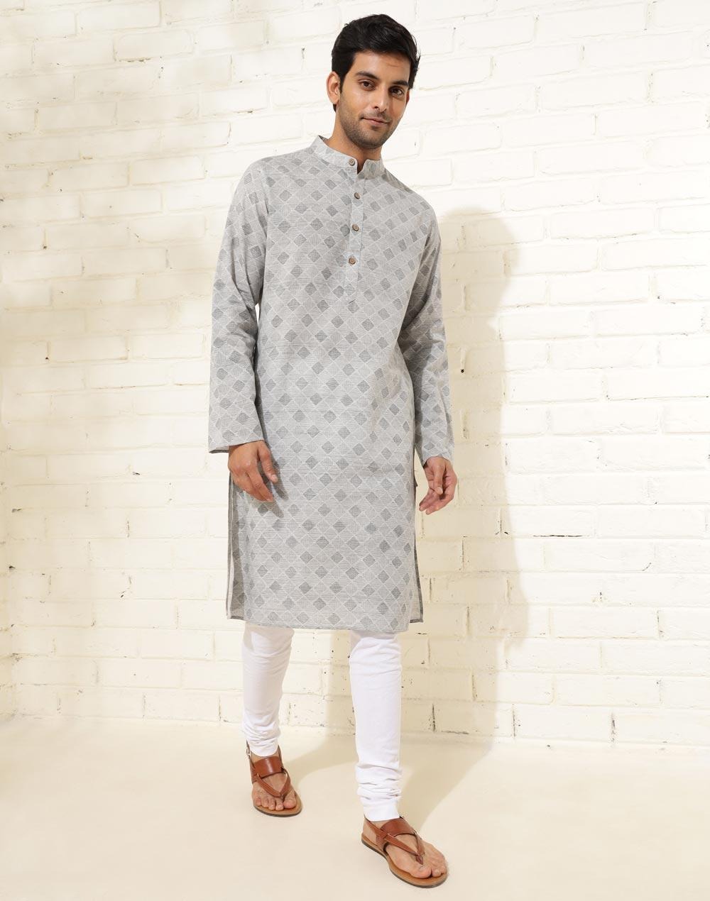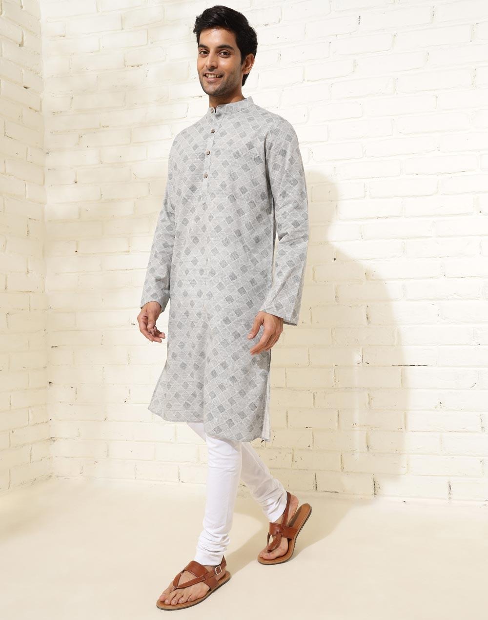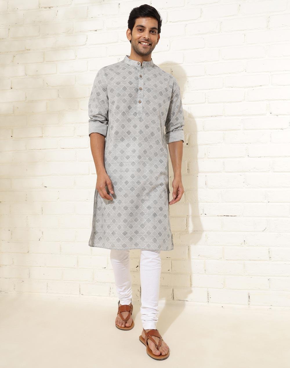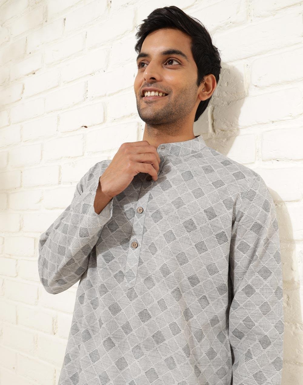 Add a dash of ethnic allure to your celebrations with our viscose silk knee-length kurtas. Perfect for any festivity, this long printed kurta boasts a straight hem, regular fit, mop shell buttons, and a V-placket. Finish your ensemble with our stylish accessories and matching pyjamas.