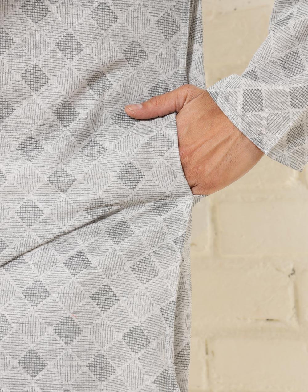 Grey Cotton Hand Block Printed Slim Fit Long Kurta (Copy) (Copy) (Copy)